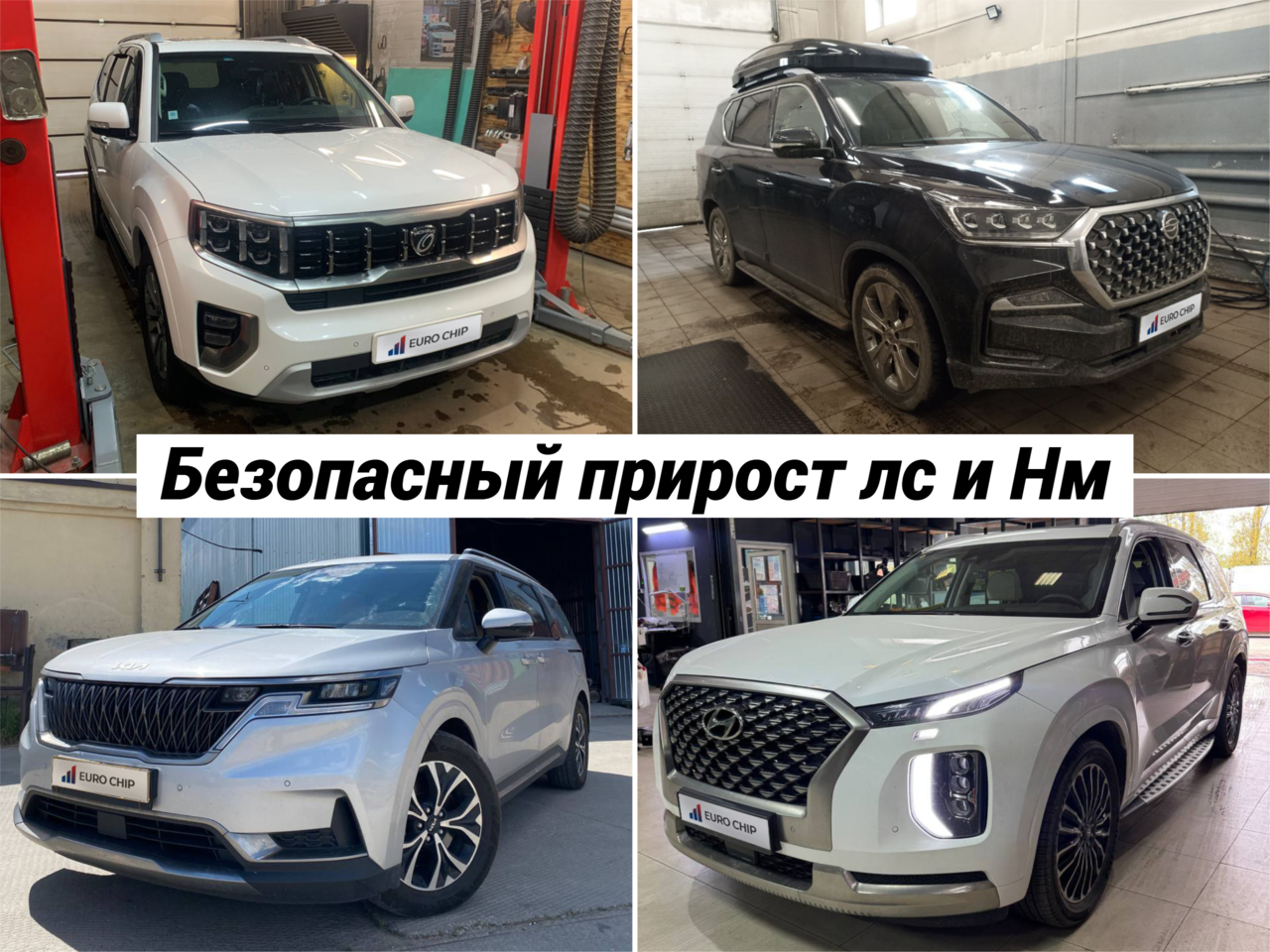 Hyundai: Creta (Крета), Solaris (Солярис), Grand Starex / H1; Santa Fe (Санта Фе), i40; ix35; Sonata (Соната), Palisade (Палисад), Tucson (Туссан / Туксон), Elantra (Элантра) .