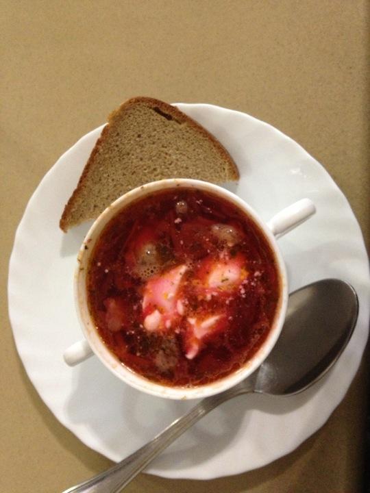 Очень вкусный борщ, а вот котлета по-домашнему с овощами и вареники с картошкой отврат.